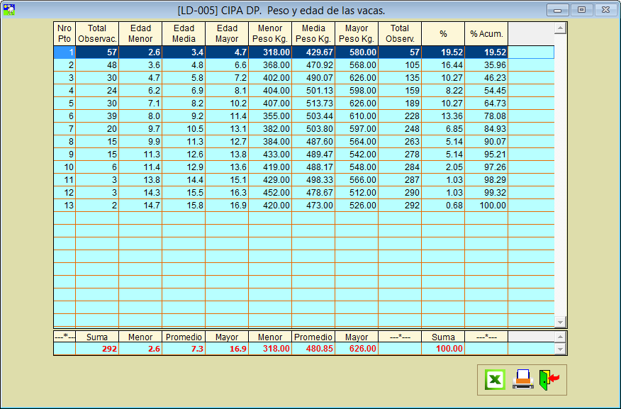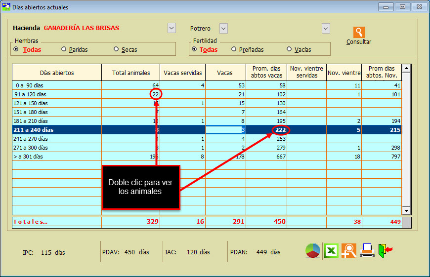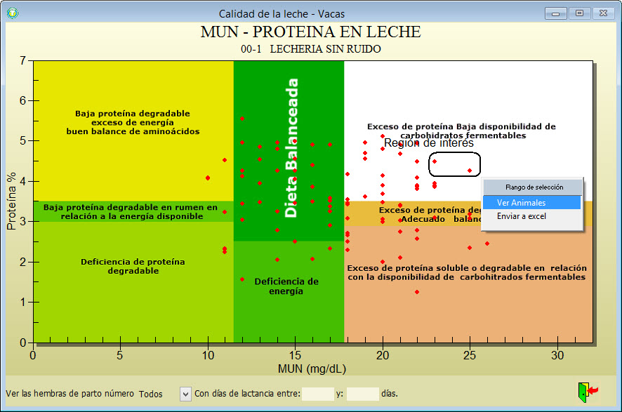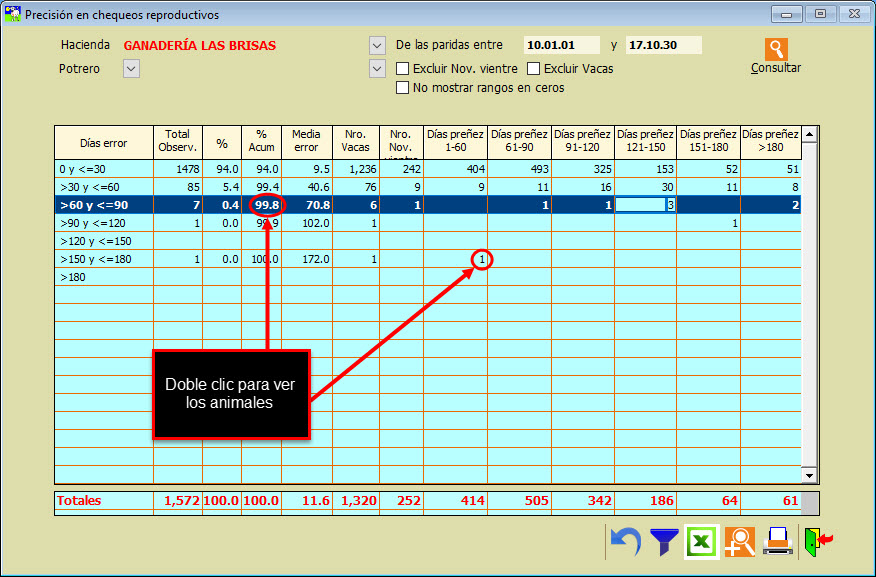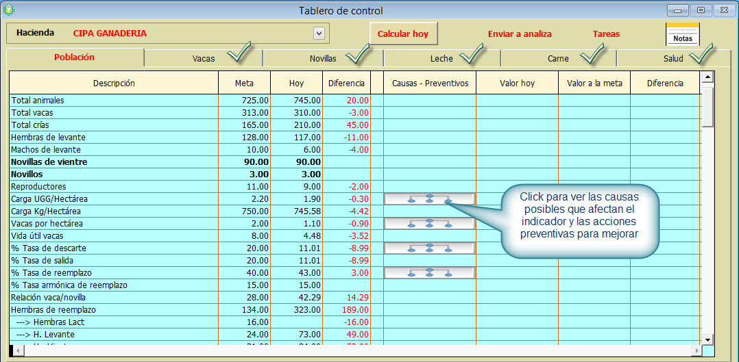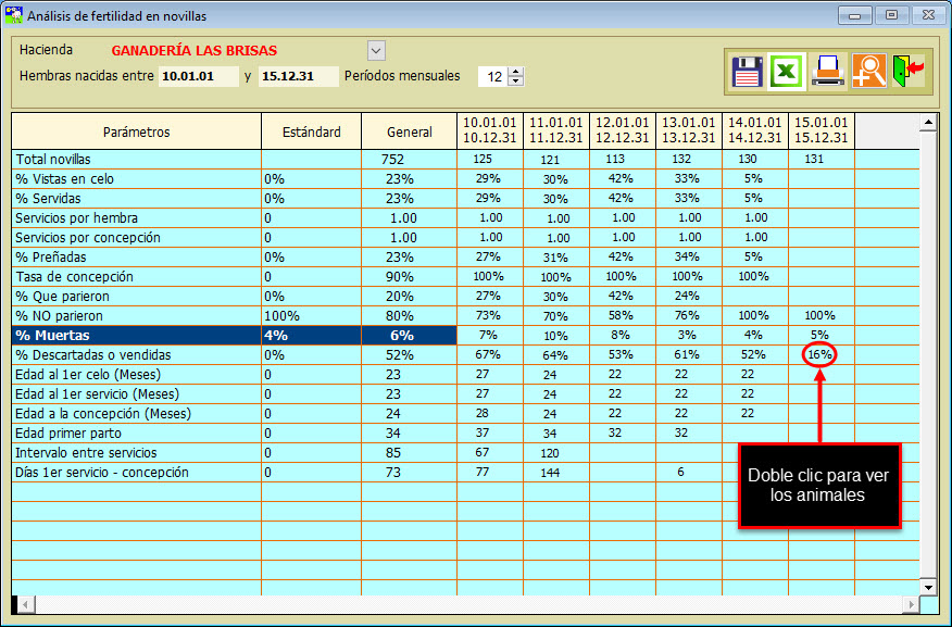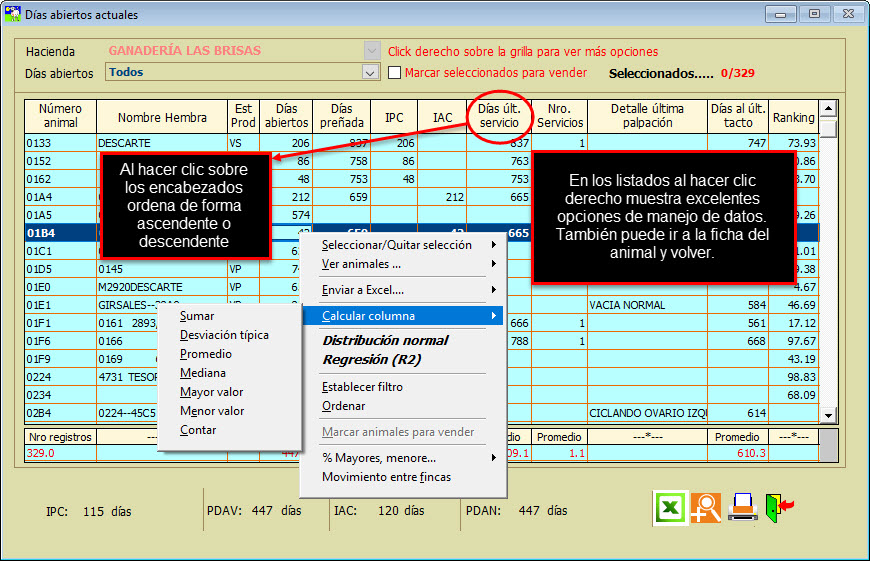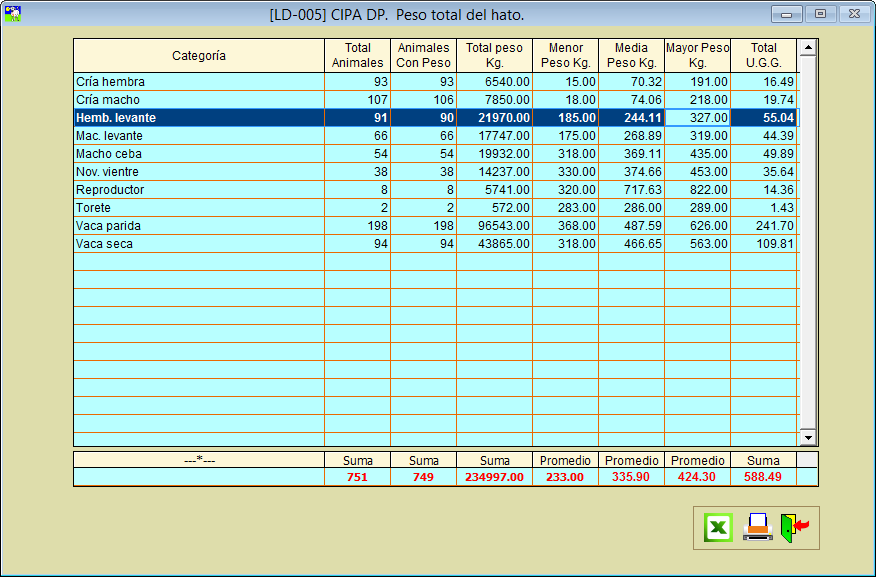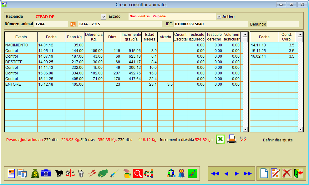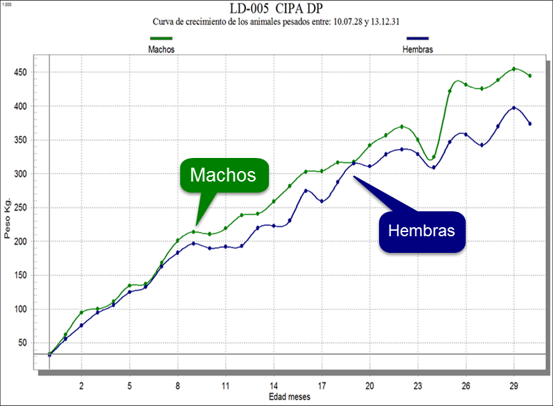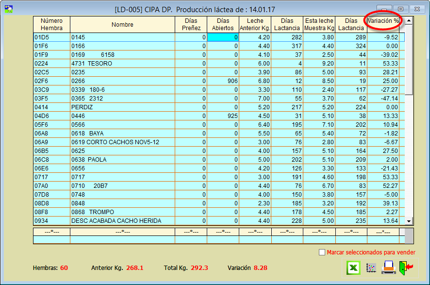 Analice fácilmente el incremento / decremento de gramo/día animal