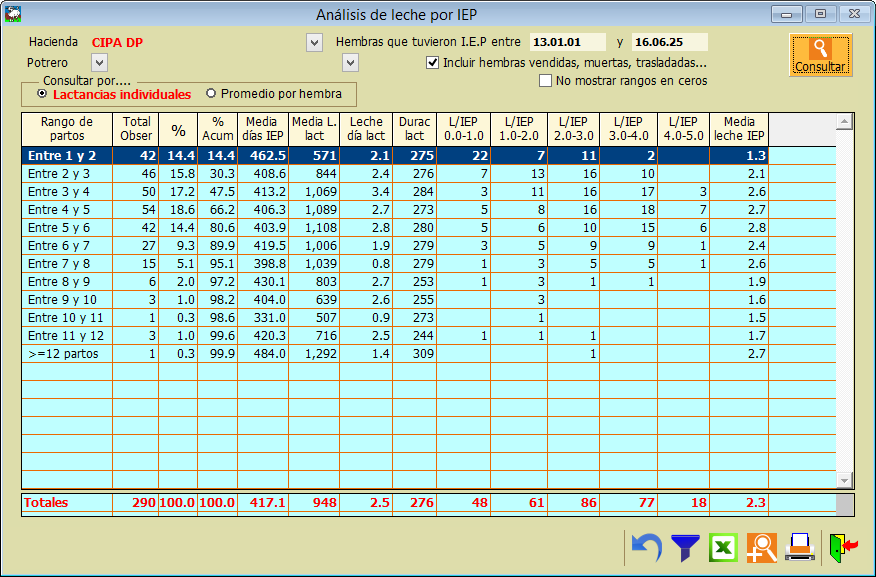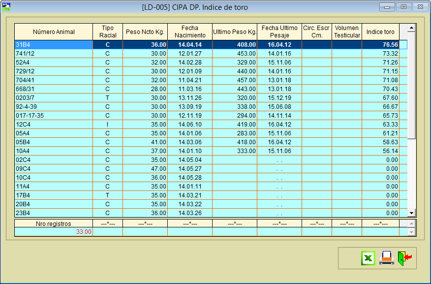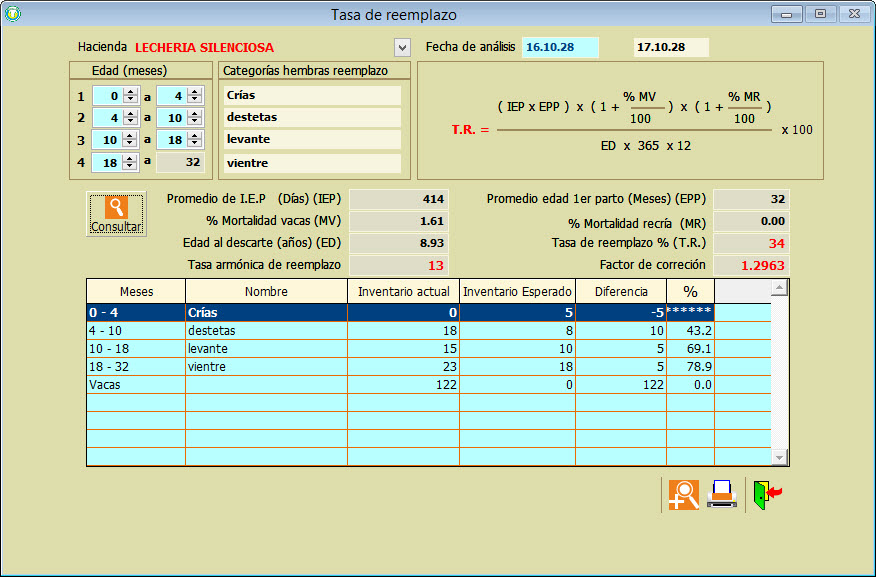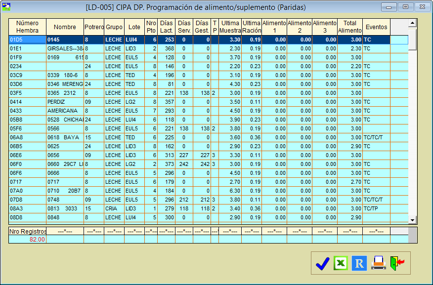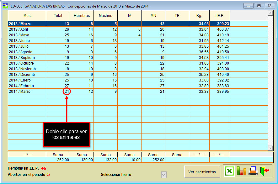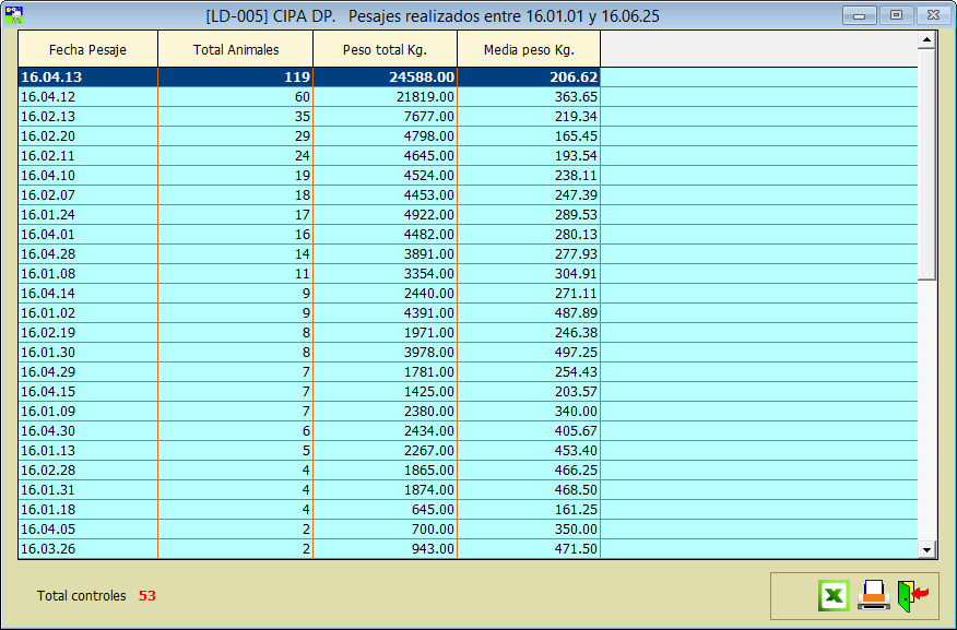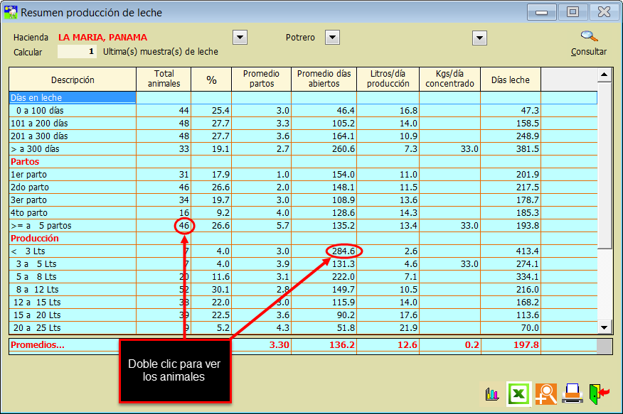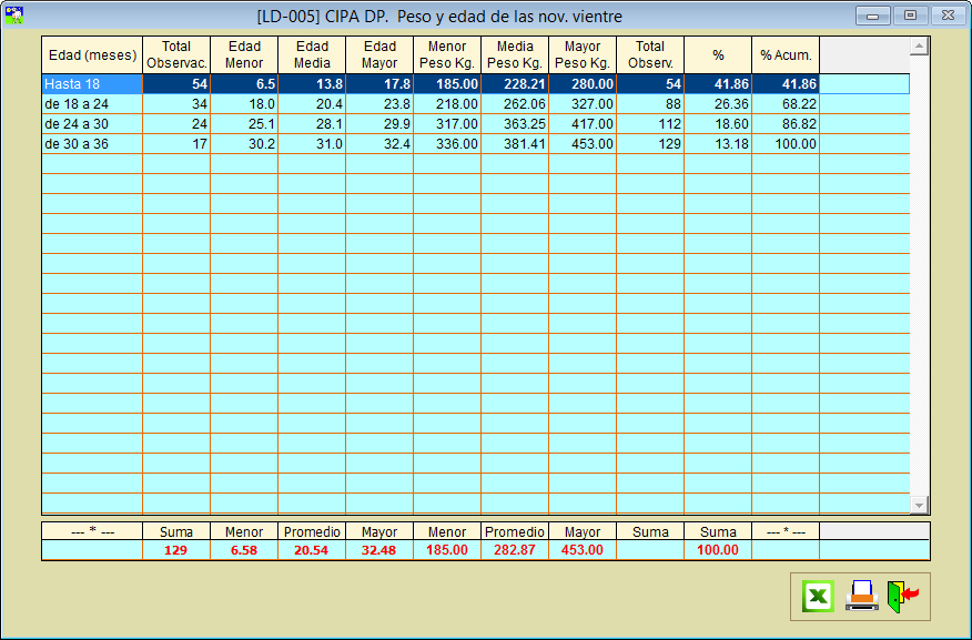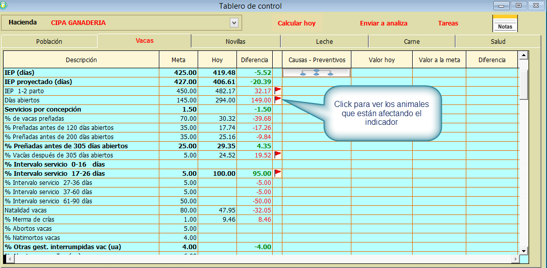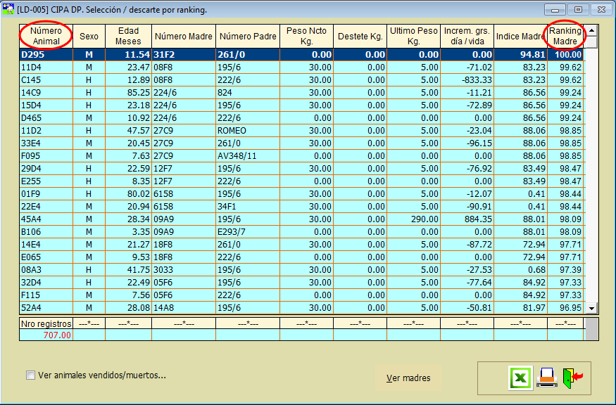 Analice fácilmente el incremento / decremento de gramo/día animal