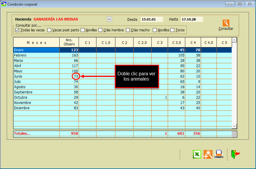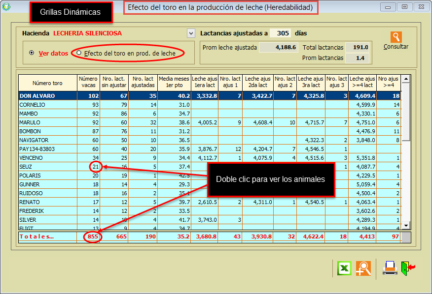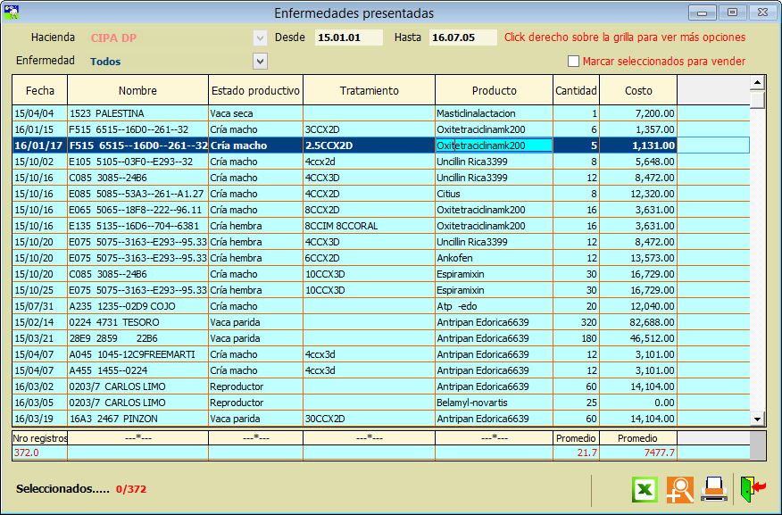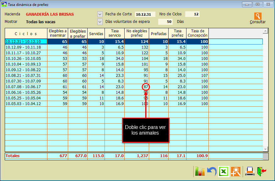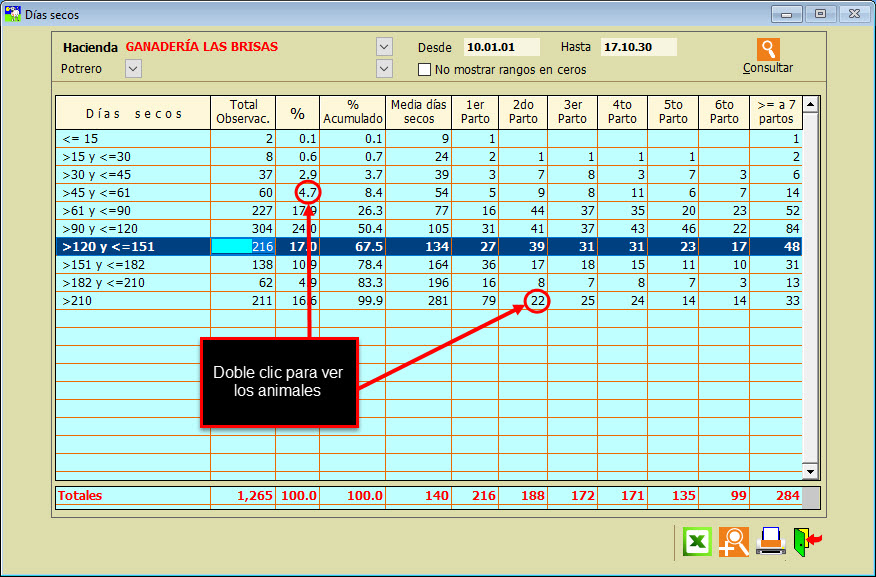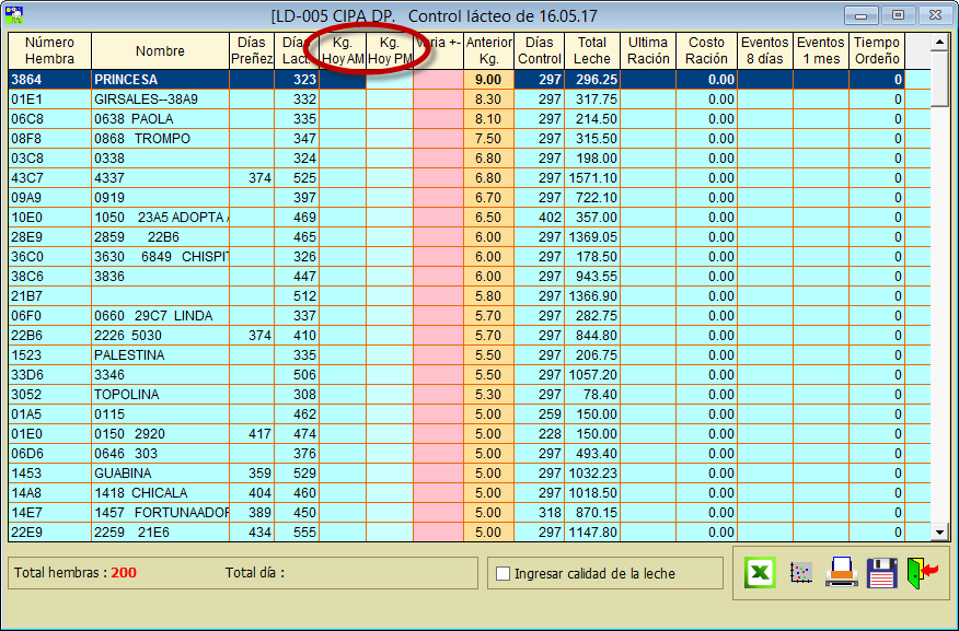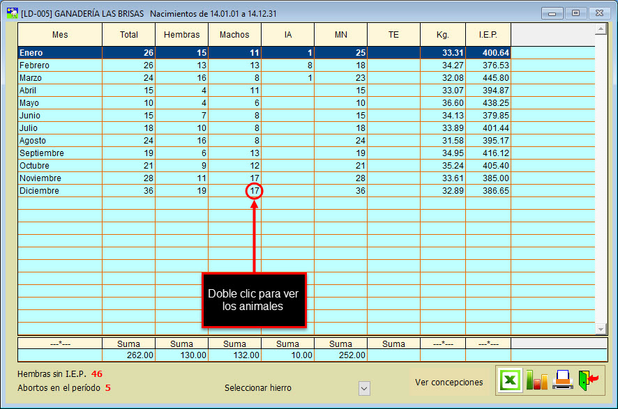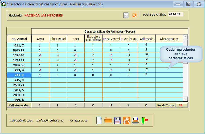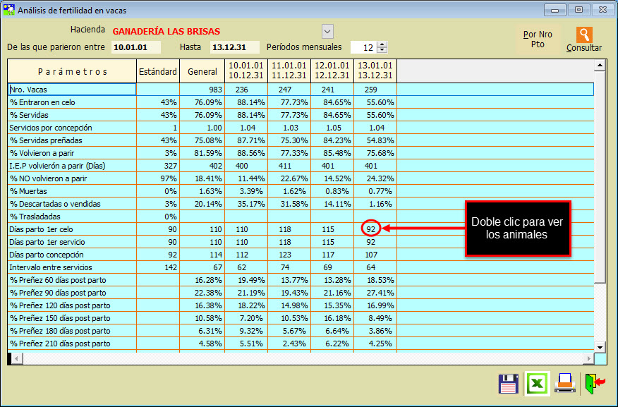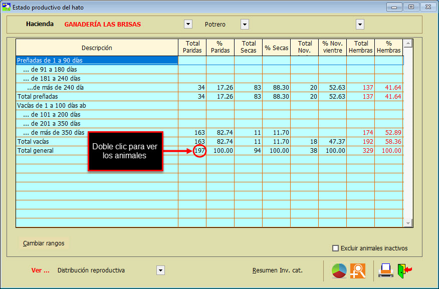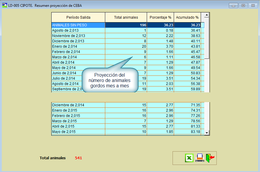 Analice fácilmente el incremento / decremento de gramo/día animal