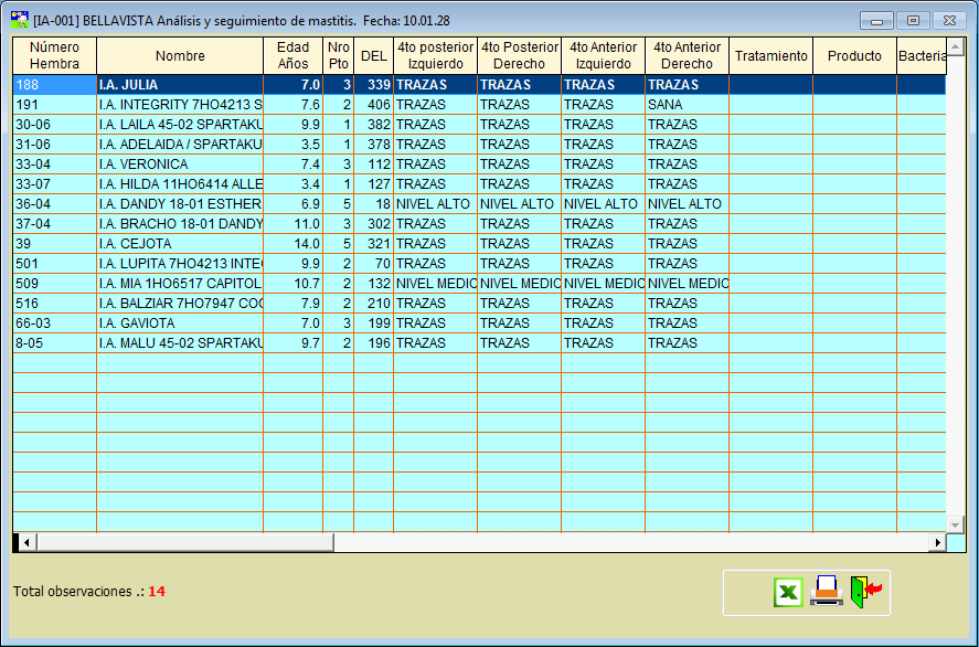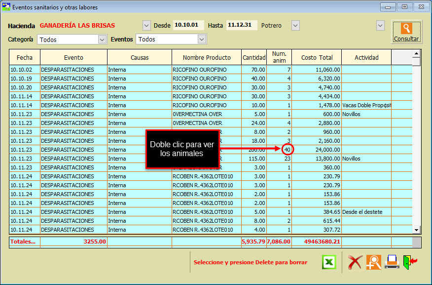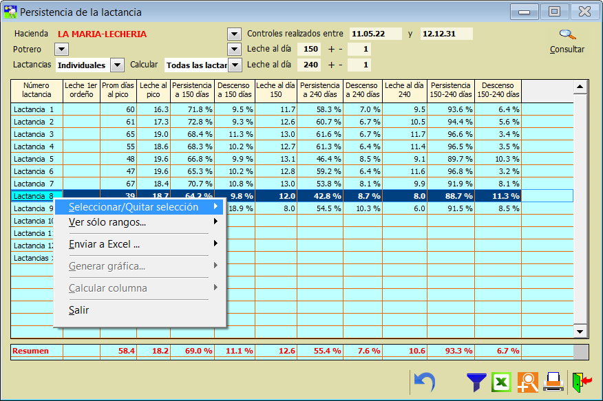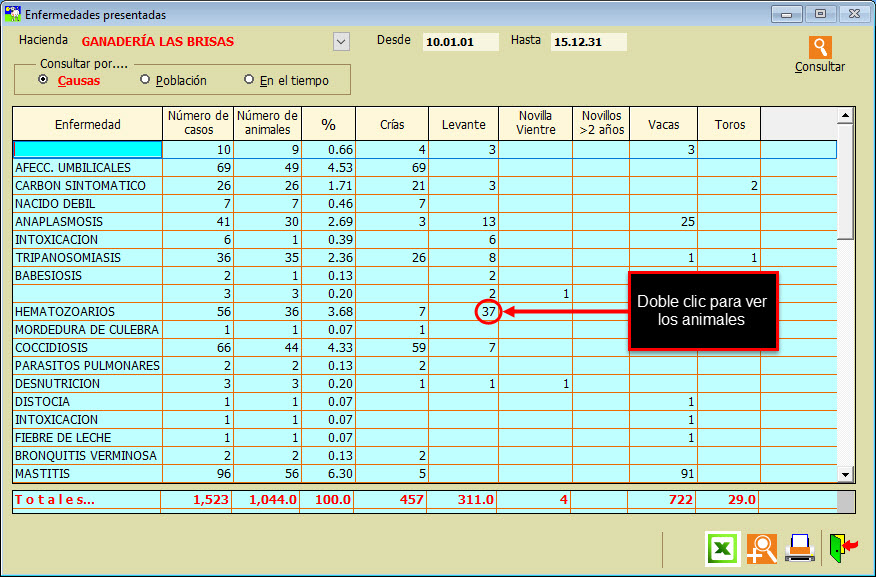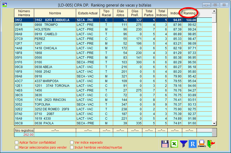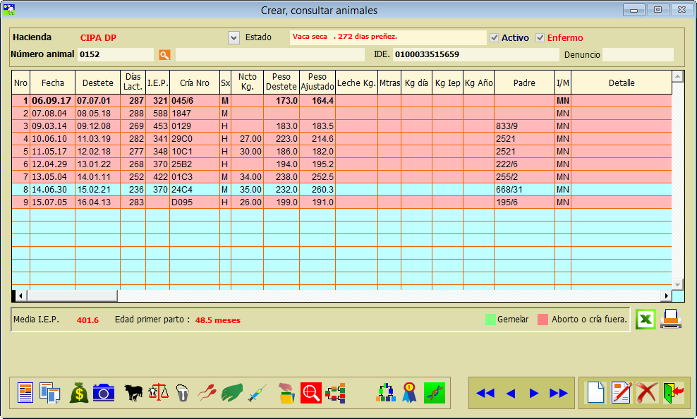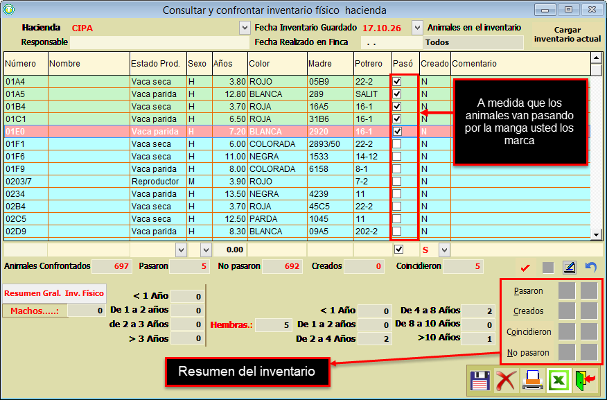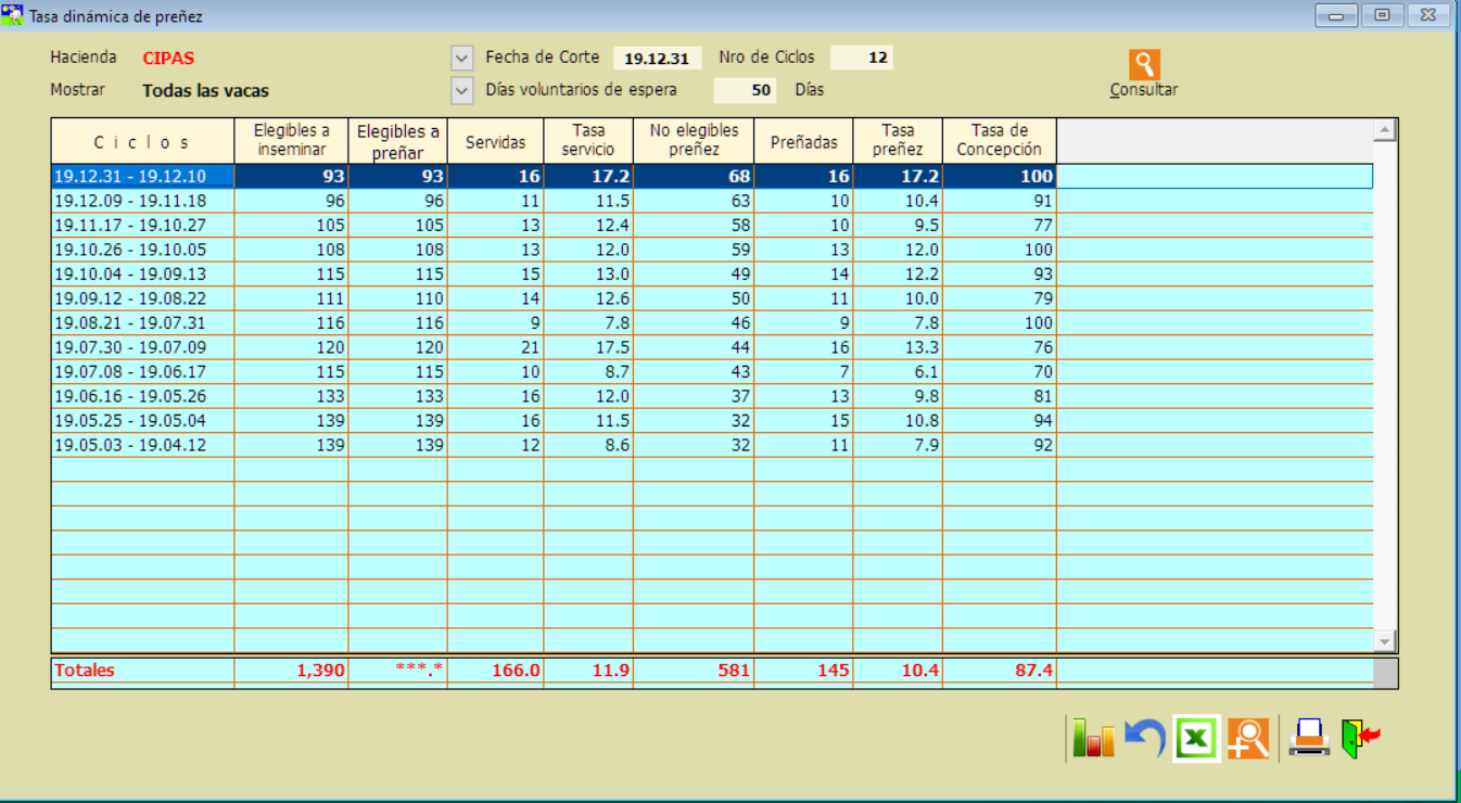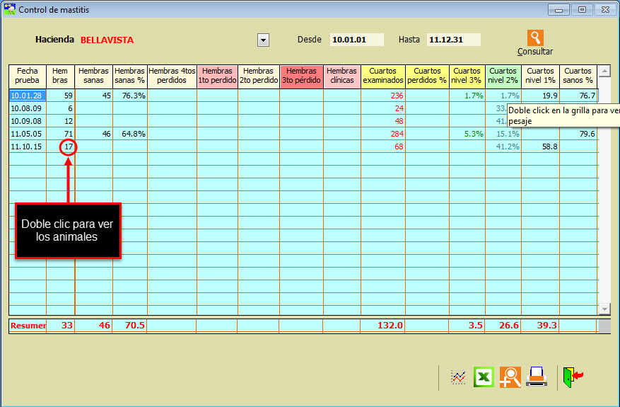 Analice fácilmente el incremento / decremento de gramo/día animal